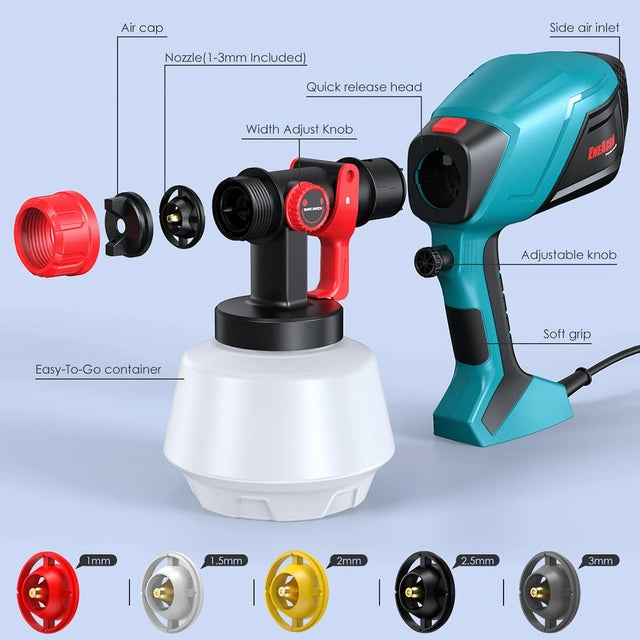 O pulverizador de tinta ENEACRO HVLP vem com motor de cobre de 700 W e um recipiente grande de 1200 ml.