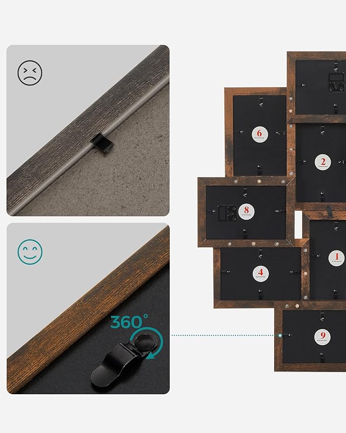 Cada moldura está numerada no verso e inclui instruções claras, para montagem simples e um resultado visual harmonioso em sala, quarto ou escritório.