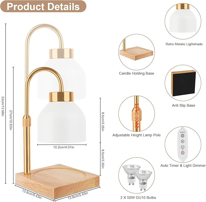 Derrete velas aromáticas através do calor de uma lâmpada halógena GU10 de 50W, libertando a fragrância de forma rápida, limpa e segura.