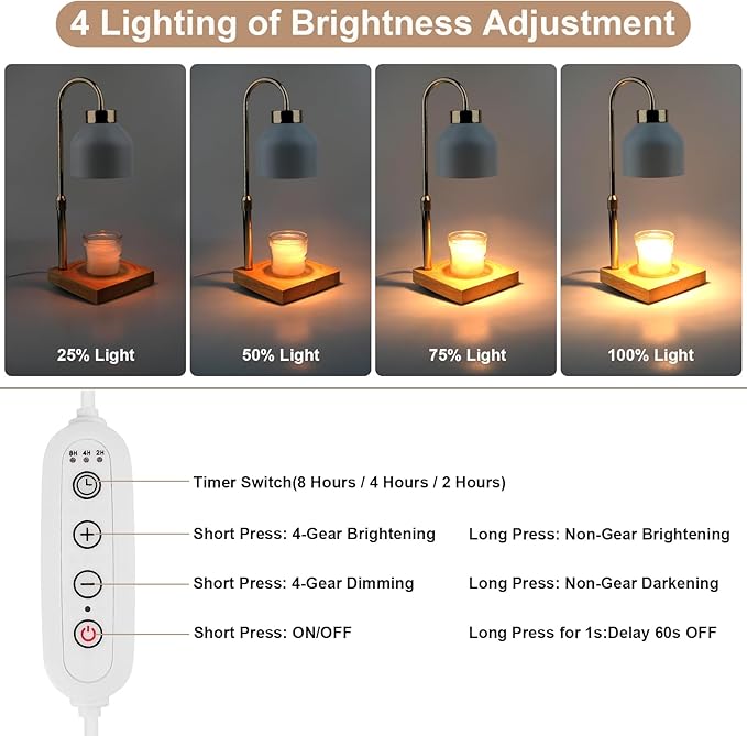 4 níveis de brilho para controlar a velocidade de derretimento e a intensidade da fragrância.