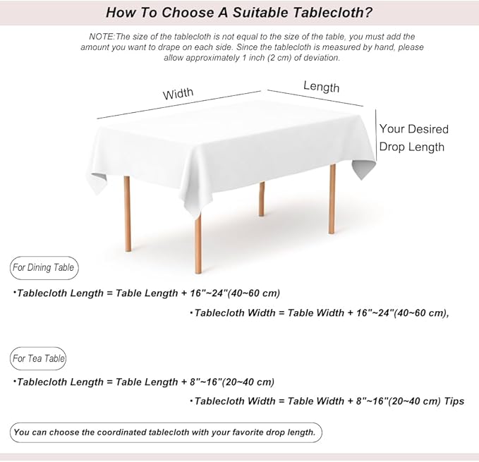 Tamanho Ideal: 140 x 300 cm, ideal para mesas pequenas a médias (2 a 12 lugares). Recomenda-se adicionar cerca de 25 cm em cada lado para um caimento perfeito.