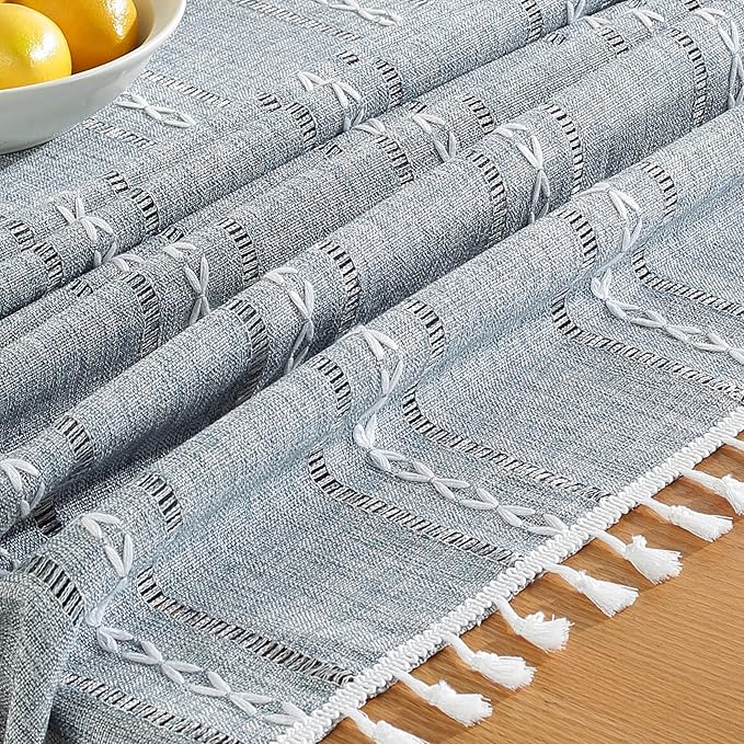 Estilo Boémio/Rústico: O padrão riscado tecido e os tassels feitos à mão acrescentam um toque elegante e acolhedor à tua mesa, perfeito para ambientes boémios ou rústicos.